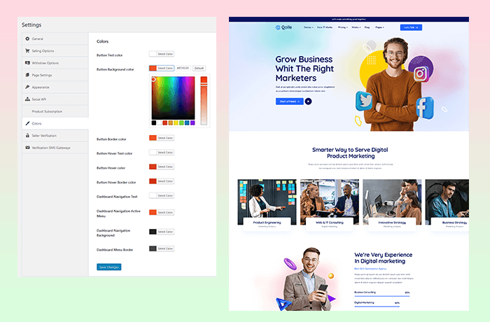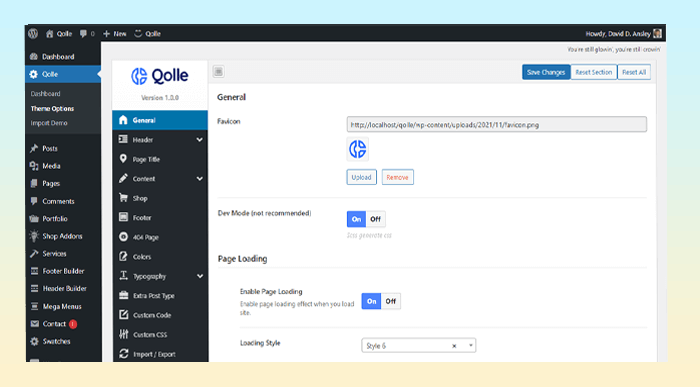 Qolle comes with live color customizer. So that you can make changes and see them in Front View.